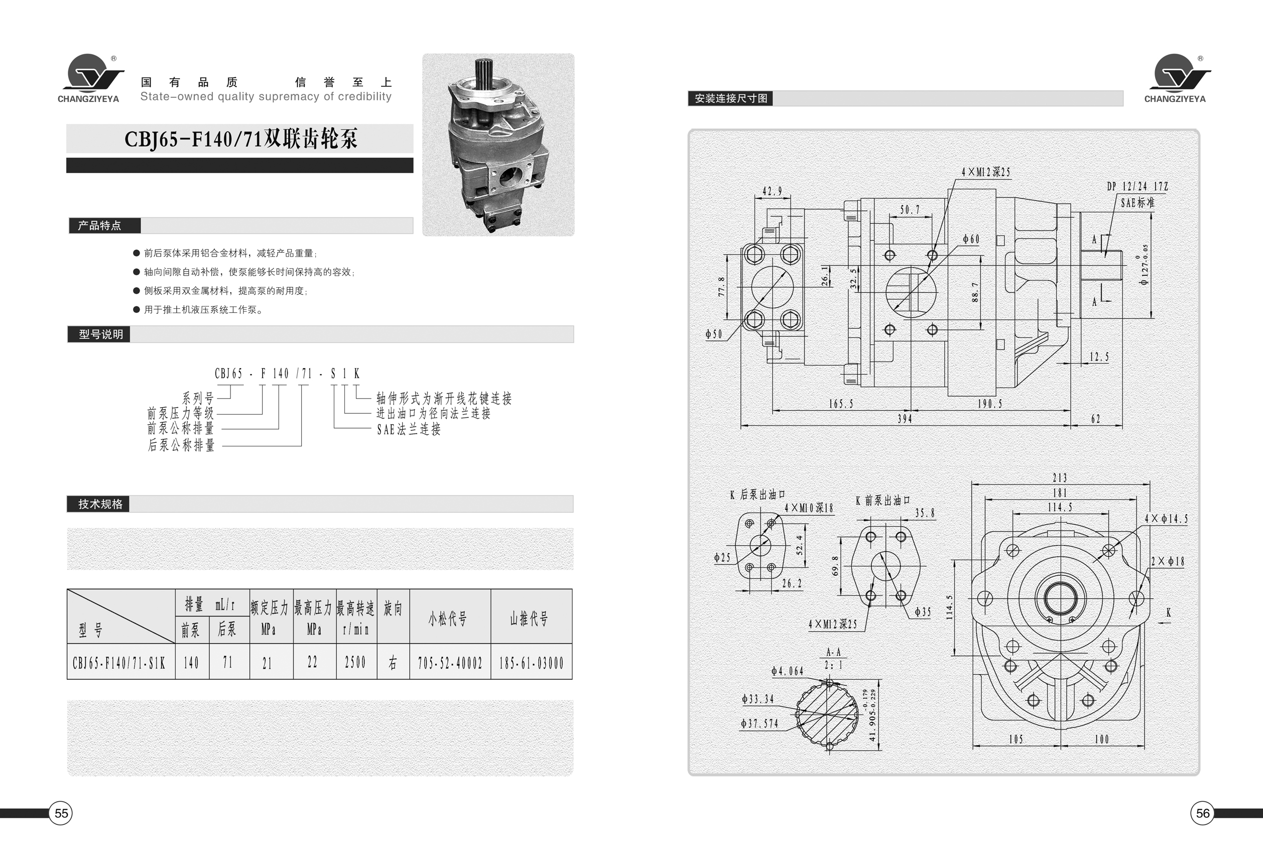 当前位置: 网站首页 / 产品中心 / 工程齿轮泵 / CBJ65-F140/71双联齿轮泵