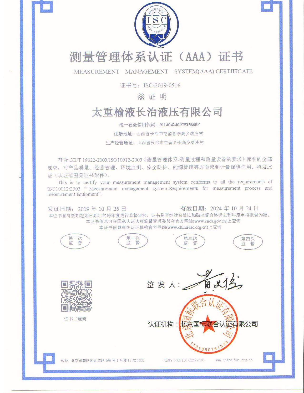 公司以高质量发展为目标,通过了ISO9001:2015质量管理体系认证、IATF16949:2016质量管理体系认证、ISO14001:2015环境管理体系认证及ISO10012-2003测量管理体系认证,确保设计过程、生产过程、采购过程、测量过程及测量设备等能够满足要求,生产出优质产品,满足用户的需求,并获得主机用户认可。